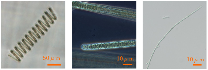 図 かび臭いにおいを出す藍藻類の例(顕微鏡写真)