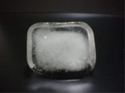 回答; 水が冷凍室等で急速に冷やされて氷になるとき、水は外側から徐々に凍っていきますが、水に溶けている空気やミネラルは徐々に氷の中央部に集められます。