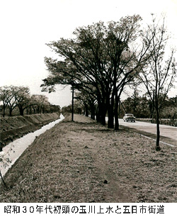 最初に分水されたのは野火止用水で川越城主松平信綱が玉川上水開削の功により許可されたものです。(明暦元(1655)年)
