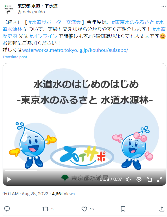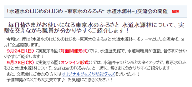 水道サポーター交流会参加者募集の際に、局ホームページやX(旧Twitter)で、予備知識がなくてもご参加いただける内容である旨をお知らせした。