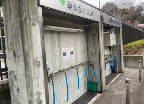 ▼ホースを設置した例(淀橋給水所(新宿区))