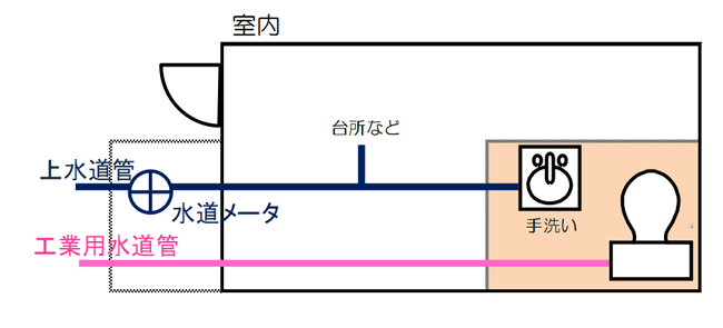 - トイレ用水分の使用水量も水道メータで計量されるため、工業用水が使われていない住宅と同様、トイレ用水分も含めた上水道料金及び下水道料金をお支払いいただくこととなります。