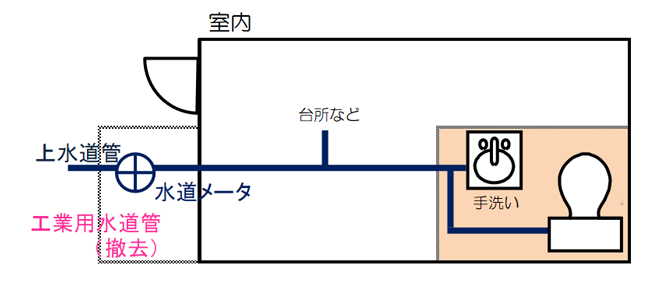 工業用水道事業の廃止に伴い、トイレ用水について工業用水道の給水から上水道の給水に切替える必要があります。