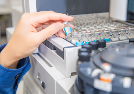 私は入庁して2年目で、担当している主な仕事は、23区内にお届けしている水道水の水質検査です。水道水は、51項目にも及ぶ国の法令によって定められた水道基準に適合していなければなりません。私は、水道水の安全性やおいしさを確認するために、これらの水質検査に正確、迅速に対応しています。例えば、物質によっては、採水してから時間が経つと分解して数値に影響が生じてしまうものもあるので、現場で採水した試料が水質センターに届いたら、すぐに検査作業に取り掛からなくてはなりません。検査する物質ごとに、水質検査装置で測定するための様々な準備をして検査しています。