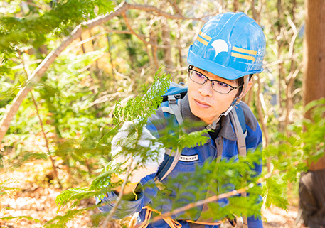 現場には週に2日〜4日ほど行って樹の種類や本数、高さ、生育状況等を調査し、前回の調査との違いを確認します。森林の管理は、経験や知識が重要になるので、日々の仕事を体系づけて、きちんと記録として残し、情報を共有するように心がけています。森林の管理はすぐに結果が出るものではありません。そのため、短期的な視点と長期的な視点をバランス良く持つことが大切になります。また、感覚的な判断に頼らないことも心がけています。 私たちの仕事はあまり表に出ることはありませんが、蛇口からおいしい水が出てくるのは 水道水源林がしっかりと管理されているからであり、責任を感じています。