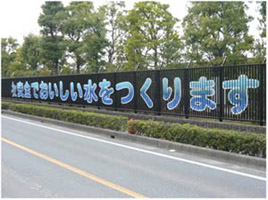 ◆浄水場の見学コースを整備することで、水道に対する理解を深めていただくとともに、水道事業への親しみを深めてもらうことができます。 ◆常に清潔感が感じられるように構内施設の美化や植栽の手入れ、清掃等を実施することで、水道施設のイメージアップを図っていきます。 |