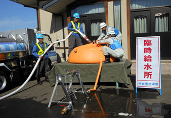 〔非常時に備えた連携〕 ◆平成24年10月16日、10月17日仙台市との災害相互応援を想定した訓練を実施しました。 ◆平成25年3月26日横浜市との災害相互応援情報交換会を実施しました。 ◆平成24年8月31日川崎市と連携して、登戸連絡管運用訓練を実施しました。 ◆平成24年10月15日川崎市と連携して、町田連絡管運用訓練を実施しました。 ◆平成24年10月24日埼玉県と連携して、朝霞連絡管運用訓練を実施しました。 |