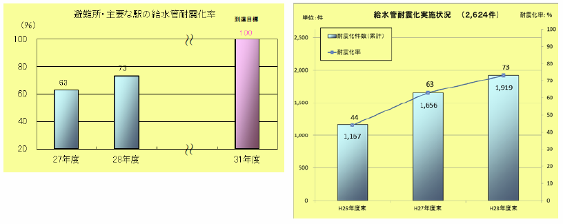 | 評価 平成31年度を完了目標とする重要施設については、既に全ての供給ルートを抽出し設計の着手に向けた関係機関との調整を開始しており、目標を達成できる見込みです。 さらに、東京2020競技大会会場への供給ルートの耐震継手化については、一層加速化して実施しており、対象となる供給ルートの全てについて、設計に着手 しています。 |