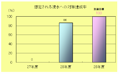 | 評価 浸水被害が想定される施設の対策について完了しました。2施設については、引き続き対策を進めます。 こうした取組によって、災害時における安定給水が確保されます。 |