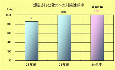 | 評価 ・対象年度の検証 平成31年度を完了目標とする避難所等給水管の耐震化については、平成29年度末の実績は83%であり、おおむね計画どおりに施工できました。 ・目標の達成に向けた主な課題 避難所の施設の多くは学校であり、児童の安全確保や授業への影響を最小限にするため、土日や祝日、夜間での施工を求められることから、施工日の調整に時間を要しています。 また、主要駅では、夜間の短時間での施工を要望されるほか、各テナントとの調整も必要であり、事前協議や施工日の調整が難航しています。 ・目標の達成に向けた今後の方向性 円滑に事業を推進するため、早期の段階から施設管理者や関係部署と綿密に協議を行い、計画的に施工できるよう調整を図っていきます。 |