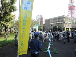 | 評価 拠点給水訓練などの様々な訓練において、実際にのぼりを掲示し、災害時給水ステーションについてPRしました。 今後とも、拠点給水訓練などの様々な機会を捉えて、災害時給水ステーションとして応急給水場所がより分かりやすくなるよう、認知度の向上に努めていきます。 |