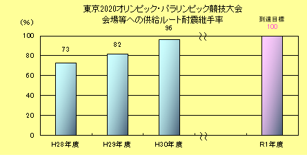 | 評価 令和元年度を完了目標とする重要施設への供給ルートの耐震継手化については、既に全ての供給ルートについて工事実施に向けた調整に入っており、目標達成に向け、着実に工事を実施しています。 さらに、東京2020競技大会会場への供給ルートの耐震継手化については、より一層取組を強化しており、対象となる供給ルートの全てについて、設計・工事に着手しています。 |
