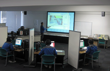 管路事故、水質事故、設備事故、震災対応などをパソコン画面上で疑似体験し、ロールプレイング方式で情報伝達等対応を訓練する「職員教育訓練システム」を共同で開発し、「危機管理研修(上級)」で活用しています。