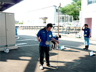 実際に浄水場・給水所で使用されている電気設備や制御機器類の模擬設備を用いて、点検、試験・測定、配線等の知識、技術を体得する研修を行っています。