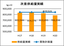 次亜塩素酸ナトリウム供給量実績が当局買取計画量を下回り、計画量未達分の補償費が発生しているため、契約見直しが必要である