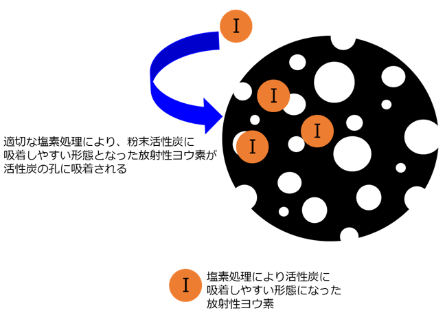 図2 粉末活性炭による放射性ヨウ素の吸着イメージ