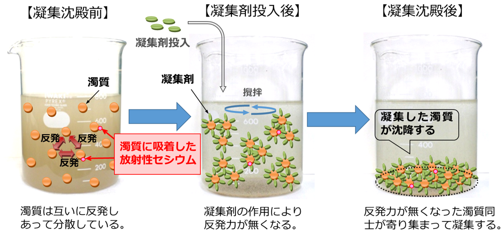 図3 凝集沈でん処理による放射性セシウムの除去イメージ